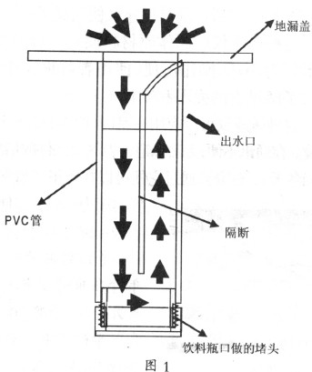 一到夏天,惡臭就從地漏里傳來(lái),而且很多小蟲(chóng)子也從地漏里飛出來(lái),很惡心,相信很多家庭都遇到了這種情況,我家就遇到了這種情況,讓家里人很頭疼。爸爸本想換一個(gè)好一點(diǎn)兒的地漏,可這個(gè)地漏被水泥砌得很結(jié)實(shí),怎么都拿不出來(lái)。我想,還是把這個(gè)地漏改造一下吧。密封不好是這個(gè)地漏的主要缺陷,如何能?chē)?yán)密堵住下水道里的臭氣,并且還能讓地面上的水順利地流下去呢?一天,我看見(jiàn)爸爸用一根長(zhǎng)管子給魚(yú)缸換水,在水管的U 形彎曲處總是有水存在。我想,水是可用于密封的液體,它不僅能堵住空氣,而且還有很好的流動(dòng)性。這里的水就能很好地把抽水管堵住,如果一頭的壓力大還能把水排出去。這不正是我想要的效果嗎?于是,我就設(shè)計(jì)了水封式防臭地漏(圖 1)。